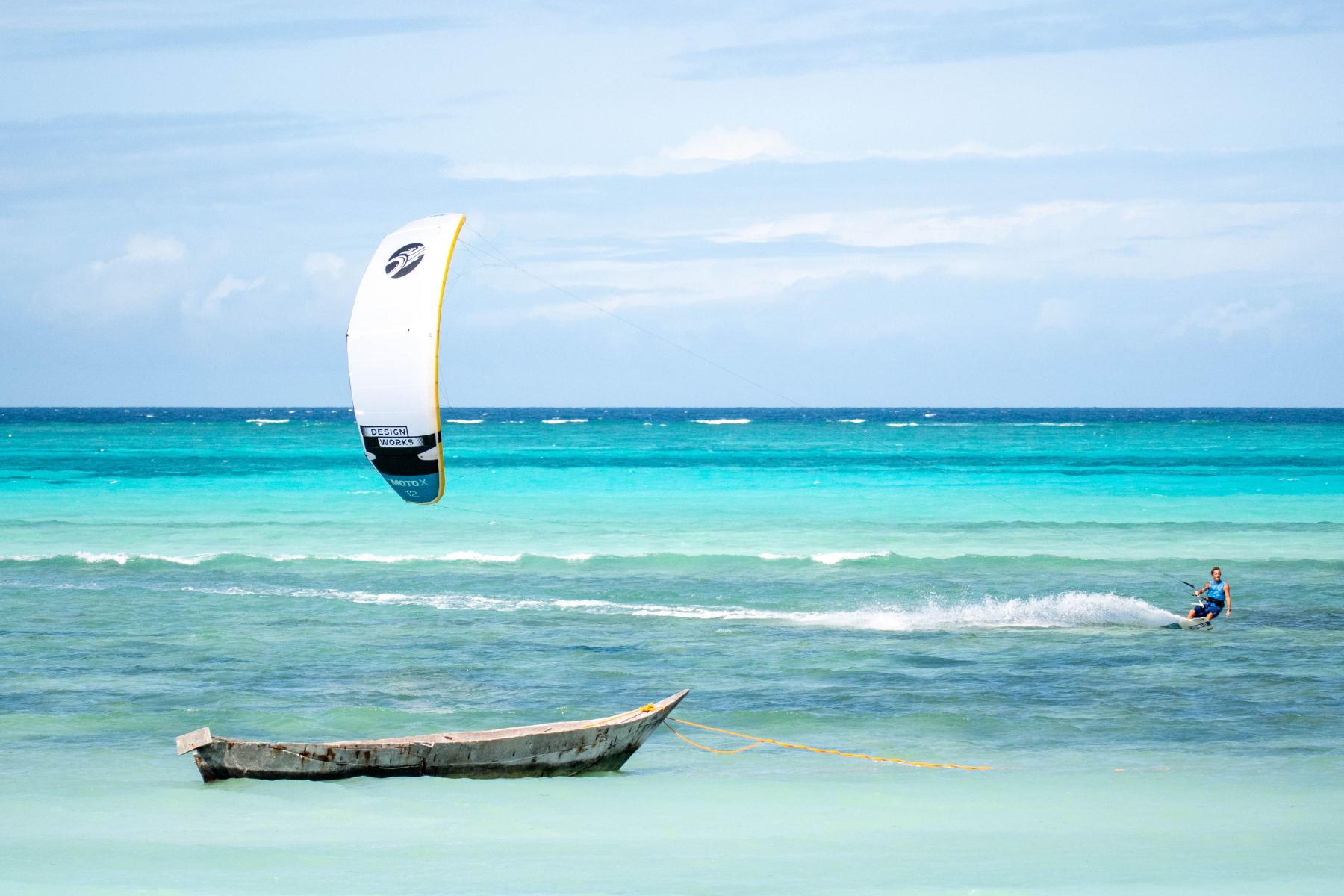 Mornings may begin with movement as light shifts across the water, while by afternoon the lagoon fills with colour and motion, with kites moving steadily across the horizon, often under Jaime’s quiet guidance. Others drift more slowly between the pool, the ocean, and the shade.
